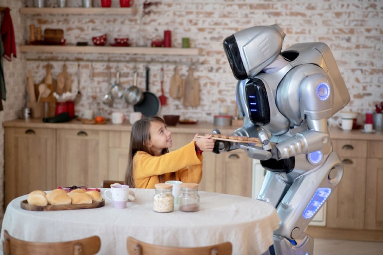 想像一下,未來居家照護機器人看見老人家在廚房,故事劇情可能是「他要煮飯」,於是問出:「今晚想吃什麼?需要幫忙嗎?」當老人拿出相簿緬懷過去,AI 也能從舊照片解讀可能故事,轉化成聊天的問句:「照片中的這個人是誰啊?你們去哪裡玩?」還能變身孩子最愛的說故事姊姊!AI 可能從儲存的繪本資料庫中,隨機抽出不同圖畫重新組合,說出全新的故事。