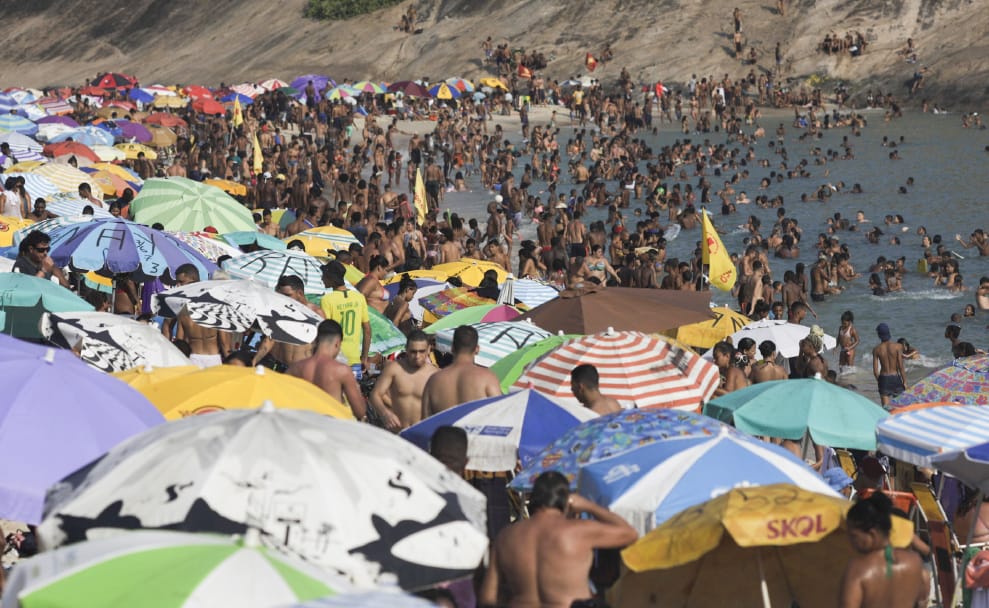 在里約熱內盧一座海灘,受不了連日高溫的民眾紛紛前來消暑。