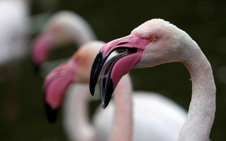 在奧地利維也納的美泉宮動物園(Schoenbrunn zoo),攝影師用鏡頭捕捉下紅鶴的模樣。