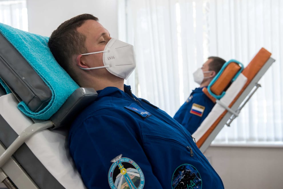 在拜科努爾太空發射場(Baikonur Cosmodrome),兩名準備前往國際太空站的俄國太空人正在接受訓練。