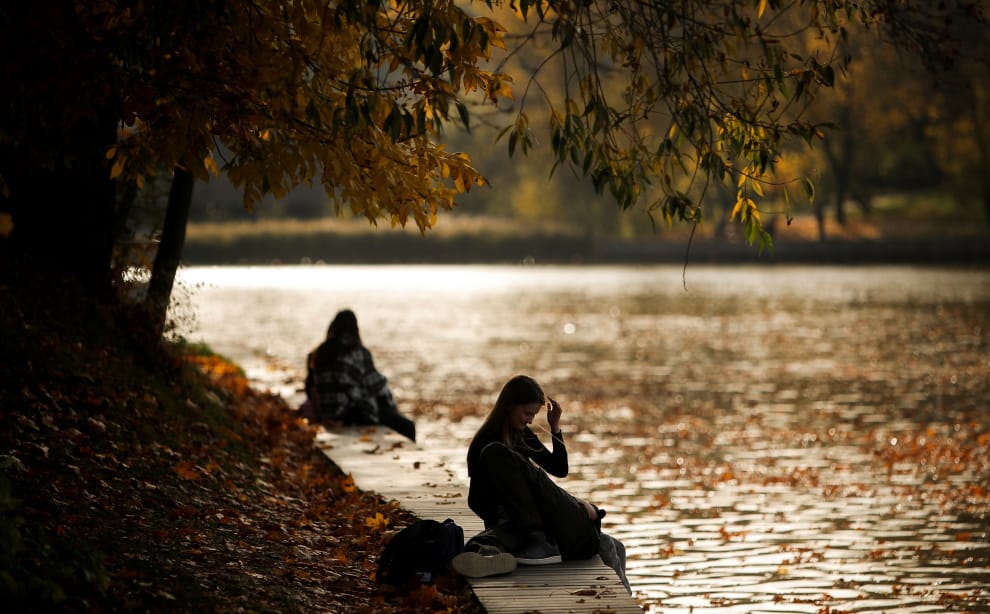 在首都莫斯科的一座公園內,人們正在享受秋日的涼爽。
