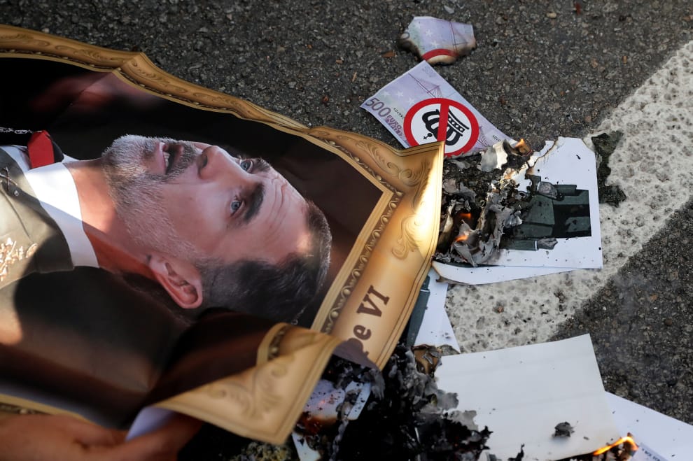 在加泰隆尼亞自治區的首府巴塞隆納,西班牙國王菲利普六世(King Felipe VI)的照片被扔在地上,反對王室的民眾聽到他和西班牙首相桑切斯(Pedro Sanchez)出訪當地的新聞,紛紛上街抗議。