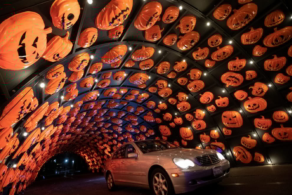 在加州的伍德蘭希爾斯(Woodland Hills)街區,為了迎接萬聖節的到來,當地民眾打造了應景的萬聖節隧道。