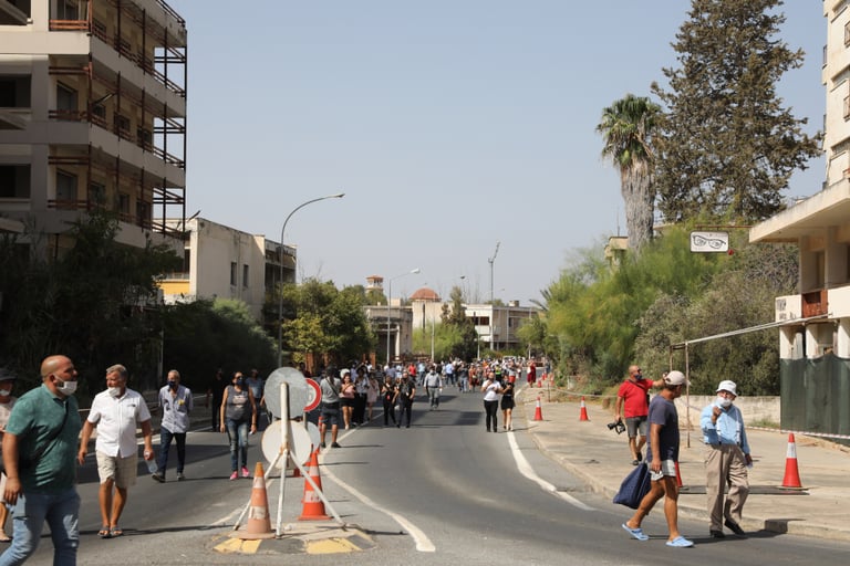上周四傍晚,部分賽普勒斯民眾及住在瓦羅莎的居民帶上布條,在賽普勒斯邊境、靠近瓦羅莎一帶舉行示威,表達對北賽普勒斯單方面重啟瓦羅莎的不滿。