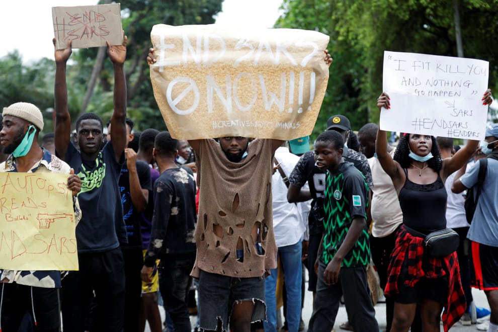 在奈及利亞第一大城拉哥斯(Lagos),奈及利亞民眾上街參與一場抗議特別警察部隊「奈及利亞反搶劫部隊」(Nigeria's Special Anti-Robbery Squad)的遊行。這支部隊雖然以「反搶劫」之名成立,卻屢屢傳出過度執法、勒索和性騷擾的問題,引發民眾不滿。