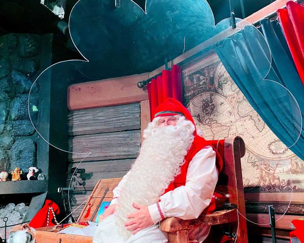 在芬蘭拉普蘭省(Lapland)首府羅凡尼米(Rovaniemi)的聖誕老人村,這裡是傳說中聖誕老人出生的地方。在一棟屋子內,一名聖誕老人獨自坐在一張椅子上。