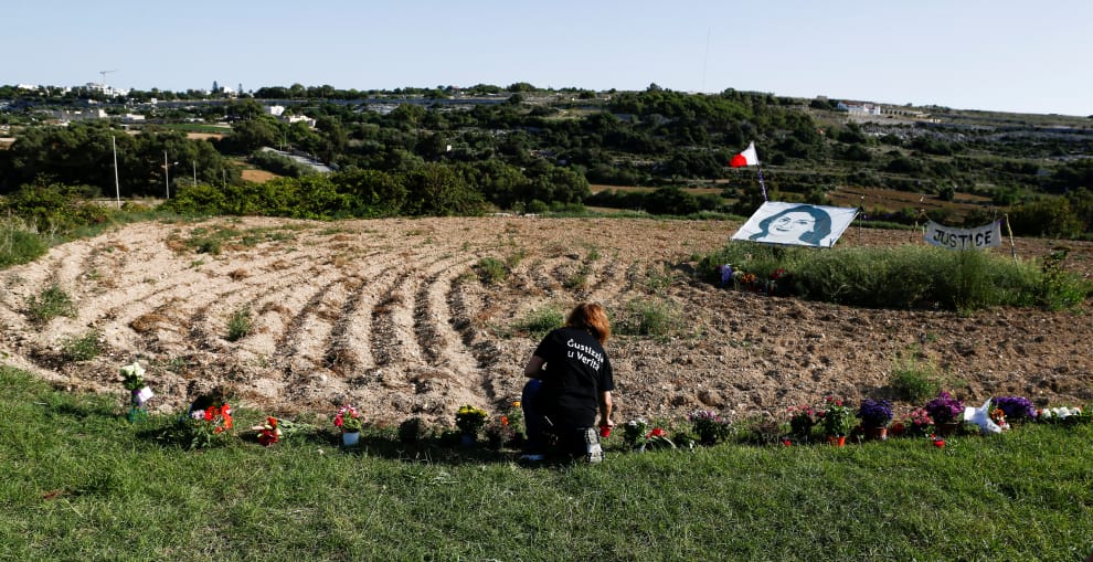 在馬爾他西北部的比德尼亞(Bidnija),一名女性親自到 3年前馬爾他知名反貪腐記者賈莉西亞(Daphne Caruana Galizia)被汽車炸彈炸死的地點,悼念她的離世。