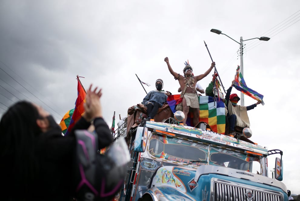 在哥倫比亞首都波哥大(Bogota),哥倫比亞原住民傳統聚集活動「明加」(Minga)上,原住民們乘坐公車發起抗議,因為哥倫比亞政府與哥倫比亞革命軍(FARC)簽訂的和平協議執行狀況並不好,原住民的領袖還是不時就會在自己的傳統領地上,被非法武裝團體謀殺,使得原住民在 16號走上街頭,發起示威活動。