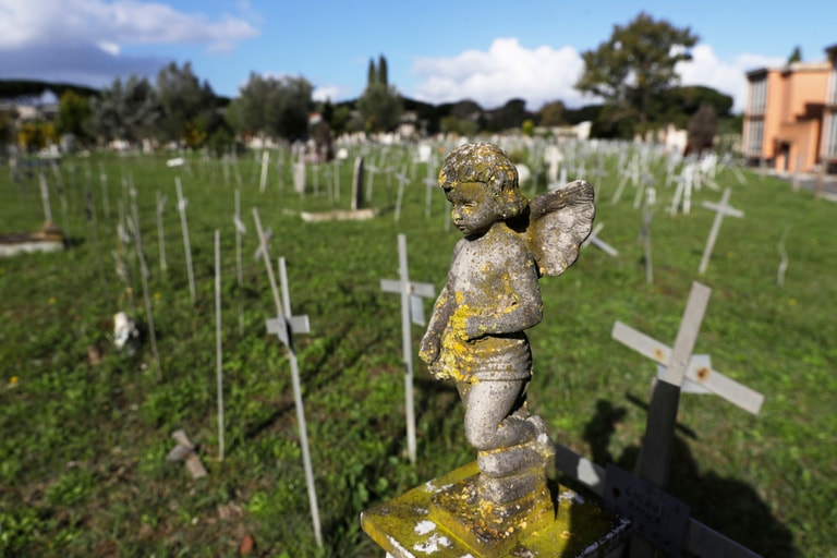 在義大利羅馬的弗拉米尼奧墓園(Flaminio Cemetery)內,有一座十字架上標示著法蘭西絲卡(Francesca,化名)的姓名,然而,法蘭西絲卡卻活生生地站在這座十字架面前。