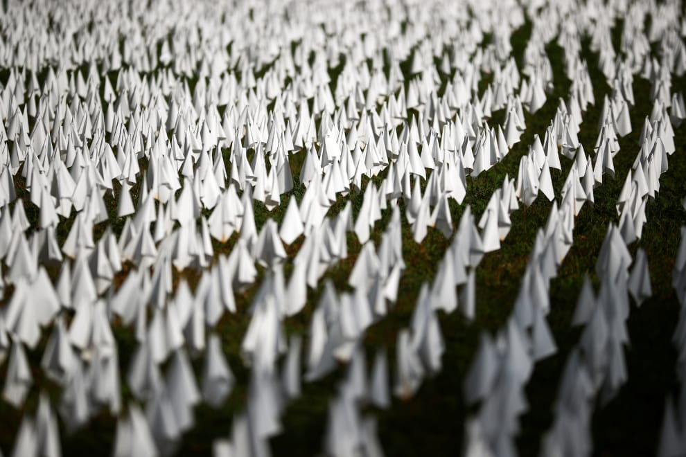 在華盛頓特區哥倫比亞特區部隊總部(DC Armory),藝術家佛斯特伯格(Suzanne Brennan Firstenberg)在閱兵場上插滿 24萬支小白旗,創作出新作品《這種事怎麼可能發生在美國...》(IN AMERICA How Could This Happen...),悼念那些在COVID-19(武漢肺炎)疫情中離世的病患們。