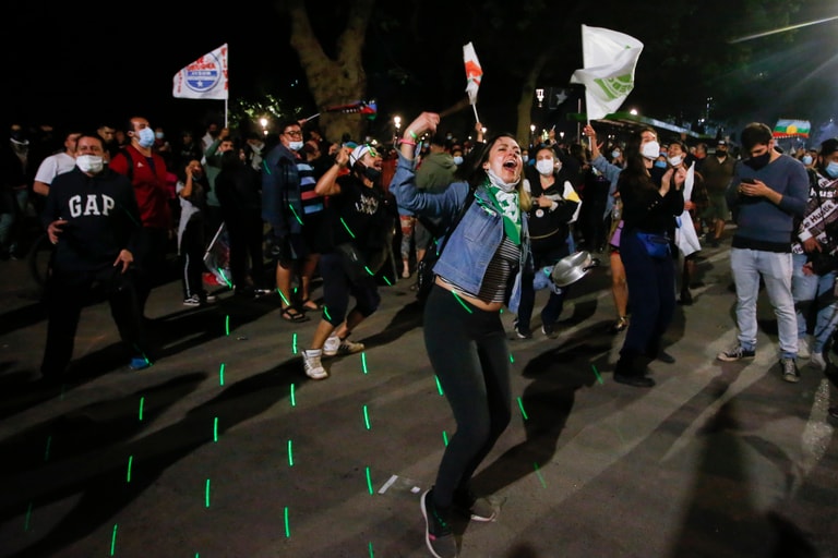 公投結果公布後,智利的街頭也沉浸在邁出關鍵一步的喜悅當中,不少人跑到布宜諾斯艾利斯的義大利廣場(Plaza Italia)上,一同慶祝這場關鍵性的公投。