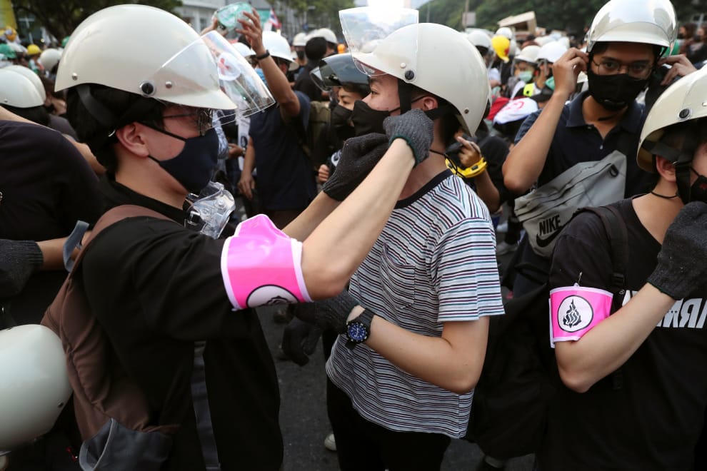 在首都曼谷,民眾互相照看參加反政府活動的裝備,準備在街頭長期抗戰,直到泰國總理帕若育(Prayut Chan-o-cha)下台為止。