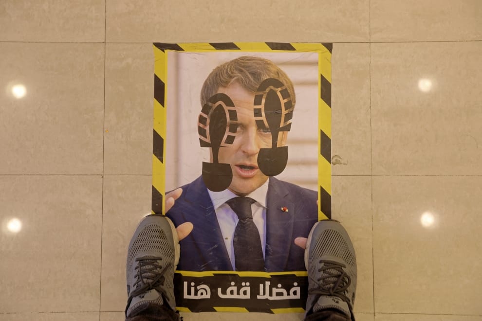 在首都的黎波里(Tripoli)的一間商店內,老闆用法國總統馬克宏(Emmanuel Macron)的照片來當維持社交距離的提示海報,讓民眾踩在他的臉上洩憤,藉此對法國屢屢拿伊斯蘭先知穆罕默德開玩笑表達不滿。