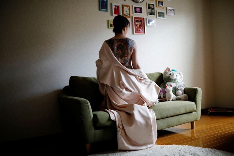 在和服店工作的吉原利恵(Rie Yoshihara,音譯)則說,她還沒讓爸爸看到自己的全背刺青,如果要外出倒垃圾的話也會戴上手套,避免被鄰居說閒話。