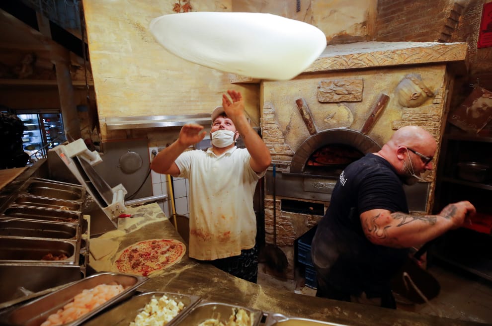 在擁有 2,000年歷史的古城波昂(Bonn),一名義大利披薩師傅趁著封城前完成最後一批的披薩。