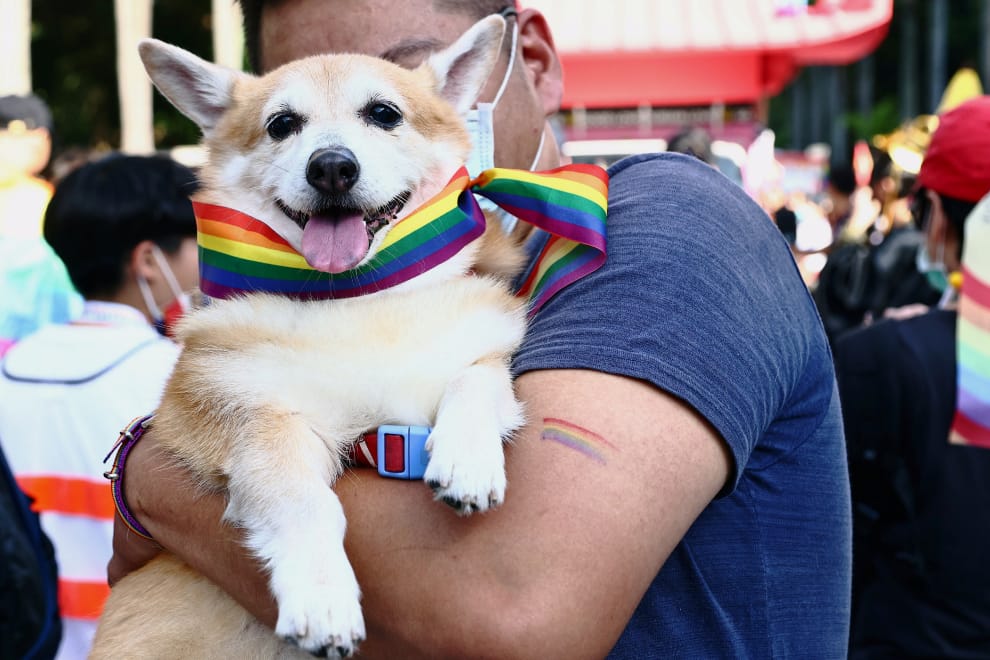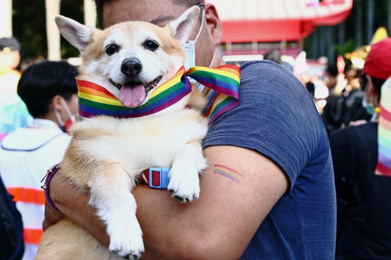 31號這天,第 18屆台灣同志大遊行在台北市政府前市民廣場登場,今年的主題為「成人之美」,一隻柯基犬也綁上彩虹綁帶共襄盛舉。
