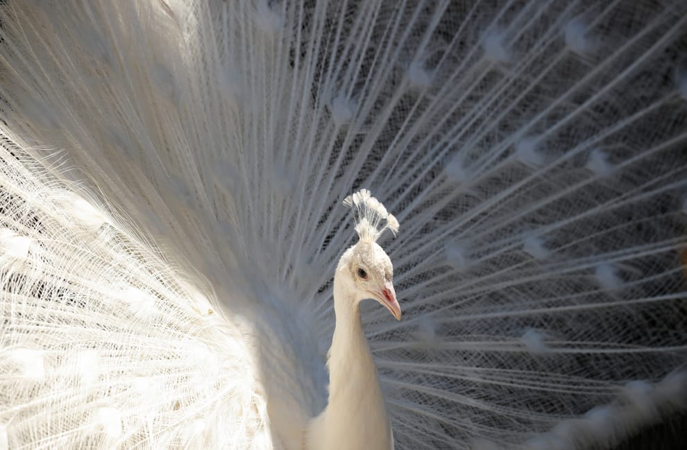 在開普敦豪特灣(Hout Bay)的鳥類世界野生動物保護區,可以看到一隻純白色的公孔雀。