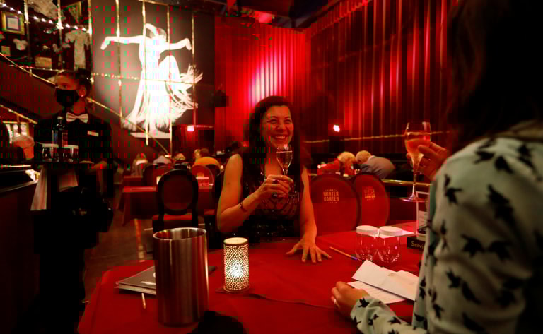 在柏林溫特加滕劇院(Wintergarten theatre),賓客們一邊啜飲著氣泡酒一邊談天,把握柏林封城前的最後一刻好好享樂。從 11月2日開始,柏林因為COVID-19(武漢肺炎)疫情蔓延的關係,即將展開為期一個月的封城。