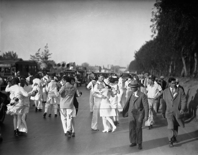 1923年,紐約舞蹈老師卡明斯(Alma Cummings)讓全國看到跳舞馬拉松的魅力,也讓商人看到有利可圖的商機。當時,卡明斯和男伴在曼哈頓上城的舞廳連跳 27小時的華爾滋,吸引了眾人的目光,也出現躍躍欲試想要打敗他們的舞者。