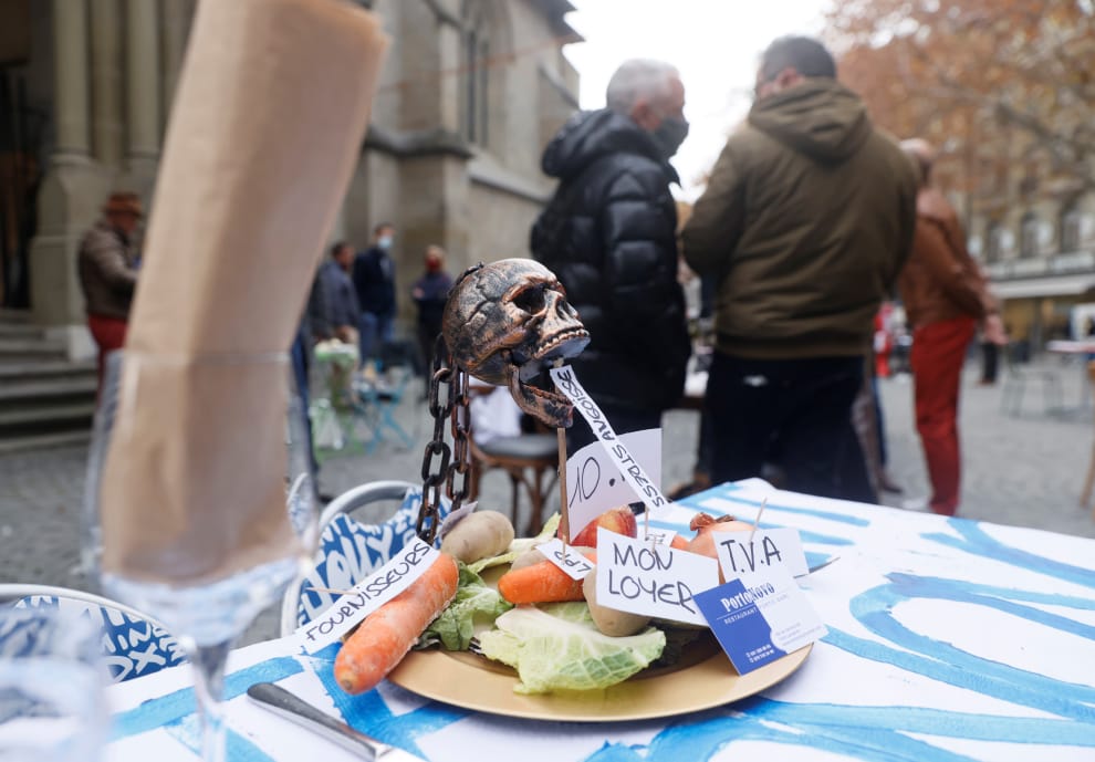 在瑞士大城洛桑(Lausanne),瑞士政府考量到近期當地COVID-19(武漢肺炎)疫情有惡化趨勢,再度下達了封鎖令。這項決定引發餐飲業者的不滿,在街道上擺出餐桌並放上一顆骷髏頭作為抗議。