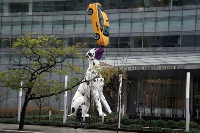 在美國的紐約市,市中心矗立著一尊名為〈大麥町犬〉(Dalmatian)的雕像,生動地描繪出一隻大麥町犬用鼻子平衡計程車的模樣。