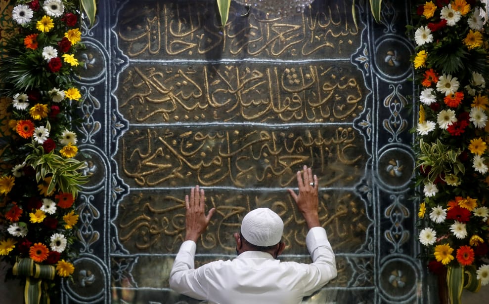在印度大城孟買,印度最近允許宗教場所可以重新對外開放,一名男子便在聽聞消息後,前往一座清真寺中祈禱。