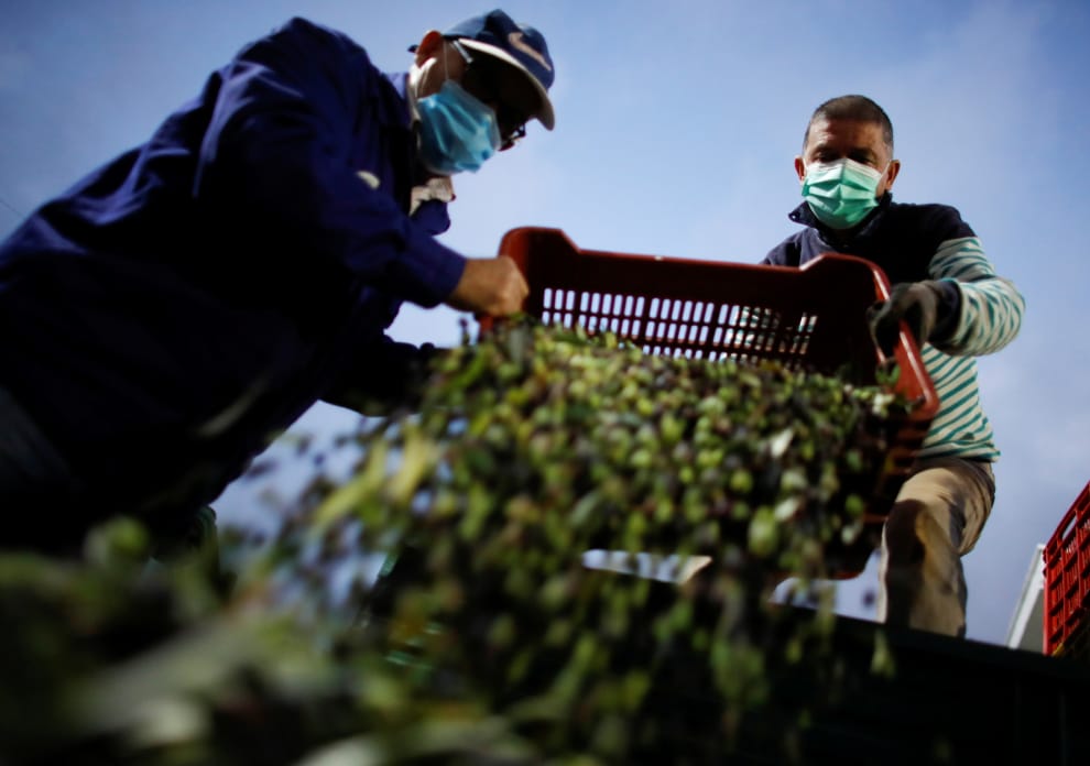 在義大利南部的奇斯泰爾尼諾鎮(Cisternino),齊茲(Zizzi)家族的成員戴上口罩,一同在一年一度的家族橄欖採收季期間採收橄欖,好將橄欖榨成橄欖油。