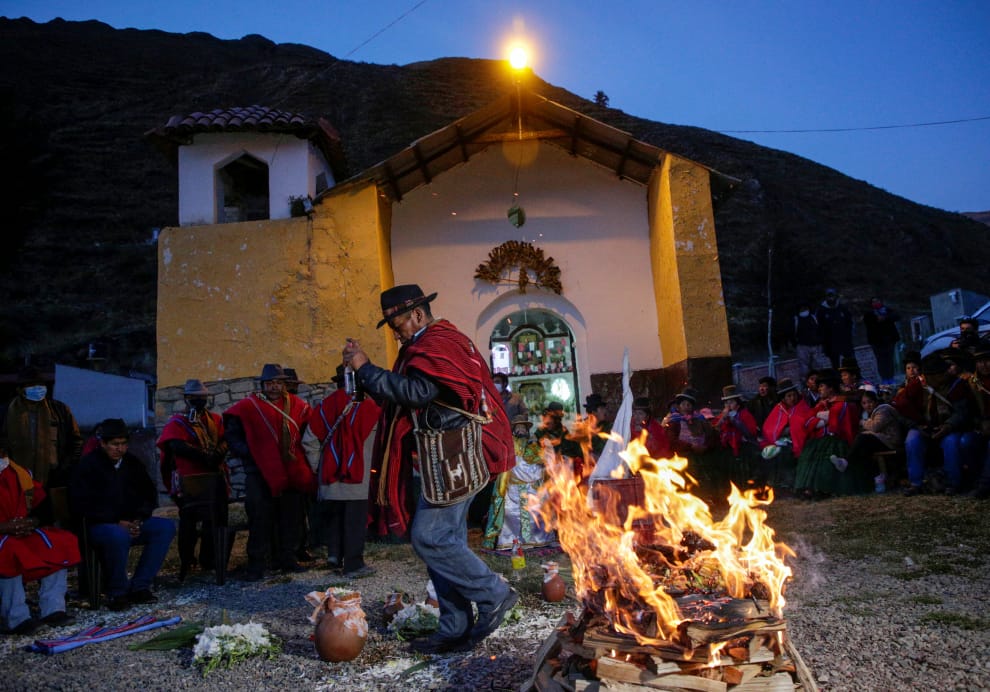 在玻利維亞首都拉巴斯(La Paz),艾瑪拉人(Aymara)的巫醫繞著營火,向天神求雨。