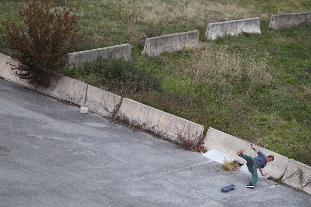 在德拉威爾州城市威爾明頓(Wilmington, Delaware)的空停車場,一名滑板好手不甚腳滑的瞬間被攝影師給捕捉了下來。