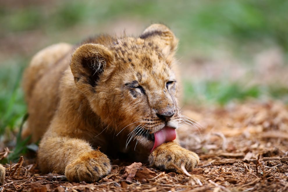 在墨西哥中部城市特拉斯卡拉(Tlaxcala)的阿爾蒂普拉諾動物園(The Altiplano Zoo),一隻剛出生的小獅子悠然梳理著身上的毛髮。