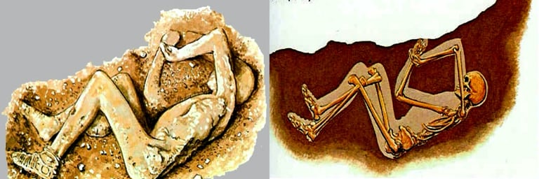 在開挖現場,只見這兩名男子躺在彼此身旁,根據他們對遺骸骨頭和牙齒的分析,考古團隊推測這兩人可能是主人與僕人的關係,僕人是年紀介於 18-25歲的年輕人,可能穿著一件羊毛製的打摺束腰外衣,考古學家根據這名少年椎間盤長期受擠壓的痕跡,推斷出他可能是在做體力活的勞工或奴隸。