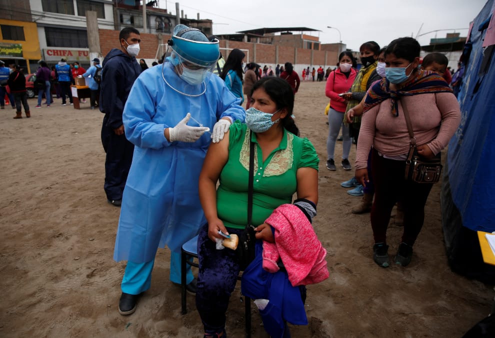 對冷鏈基礎設施比較不完備的國家而言,倘若購買輝瑞的疫苗,後續的疫苗配送、儲存等將會成為一大難題。圖為在秘魯首都利馬附近的一塊空地,一名婦女正在接種流感、破傷風、白喉和肺炎球菌的混合疫苗。