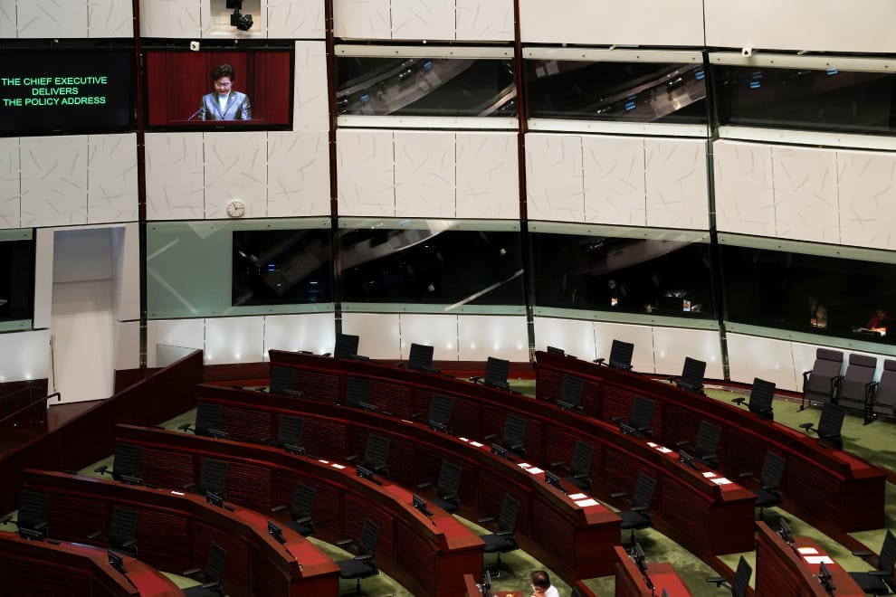在香港特首林鄭月娥於立法會進行年度施政報告時,鏡頭帶到了已經空空如也的泛民派議員座位。