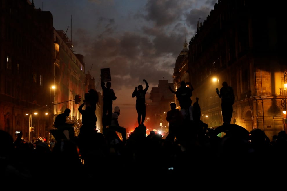 在一年一度的國際消除對女性使用暴力日(International Day for the Elimination of Violence against Women)這天,陰暗光線照耀出的身影,是響應這個日子走上街頭的示威者。