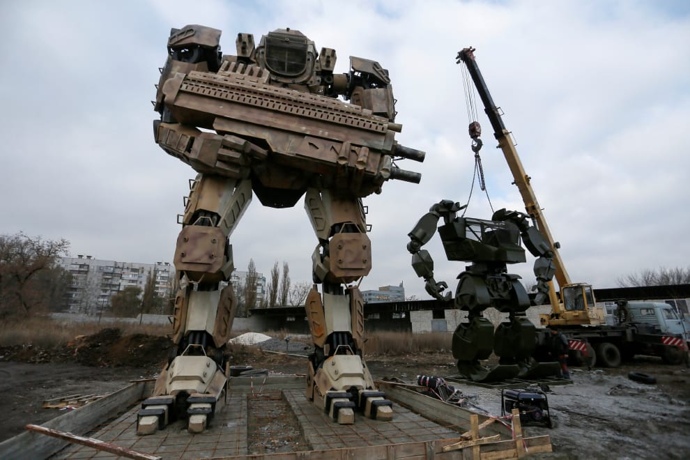 在頓內茨克(Donetsk)的汽車維修場裡,維修場工作人員和當地的機器人愛好者在閒暇之餘,利用汽車廢鐵分別製作了 13公尺、6公尺高的機器人,他們表示,未來想要在這裡打造出一座機器人公園。