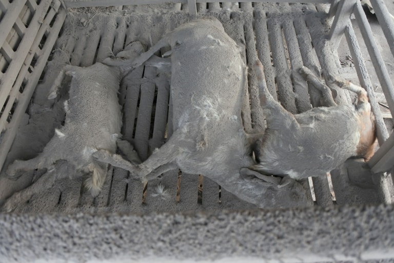 在塞莫火山(Mount Semeru)爆發後,逃不過火山碎屑流的動物全都成為火山下的亡魂。