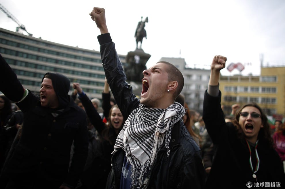 保加利亞當地學生高舉雙手大喊反政府的口號,他們對社會派分子領導的政府深感不滿,日前已經有5名示威者和警方發生衝突並遭到逮捕