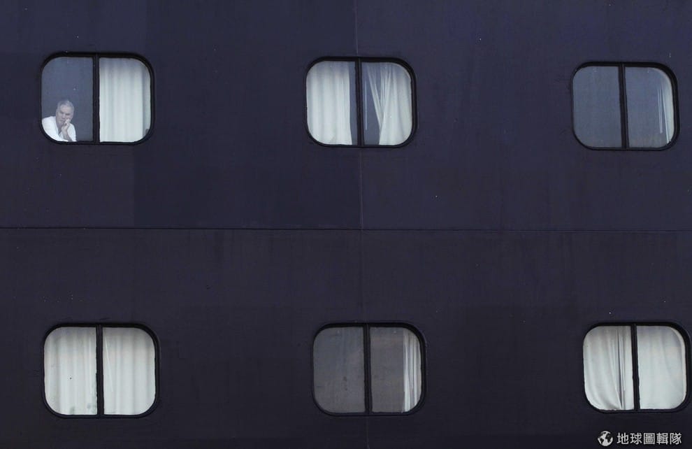 一名乘客從窗外向外望。這艘從加州出發、載有2000名乘客的郵輪「芬丹」(Veendam)是墨西哥繼2011年後,第一艘來到當地港口的郵輪。過去當地因為充滿毒品暴力等負面印象,許多郵輪就取消停駐到當地的行程