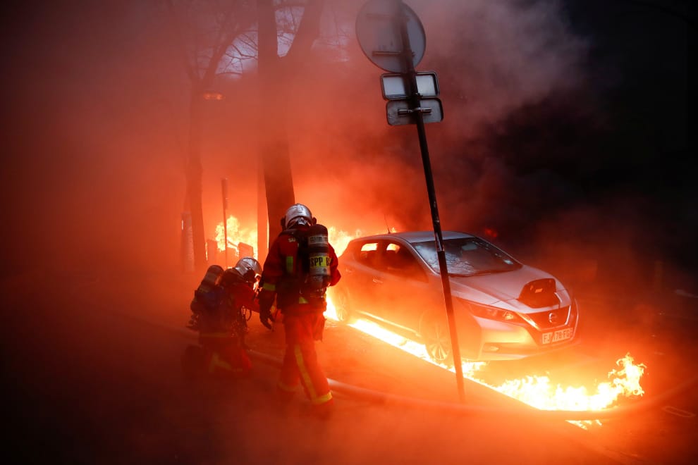 在巴黎街頭,消防員忙著撲滅民眾點燃的熊熊烈火,這把火象徵著示威民眾對《全球安全法案》(Global Security Bill)的不滿,該法案將禁止人民出於想要傷害特定警察的惡意,拍攝足以辨識出該名警察身分的照片及影片。示威者們主張,這項法案在通過後將大大限制民眾、記者的言論自由。