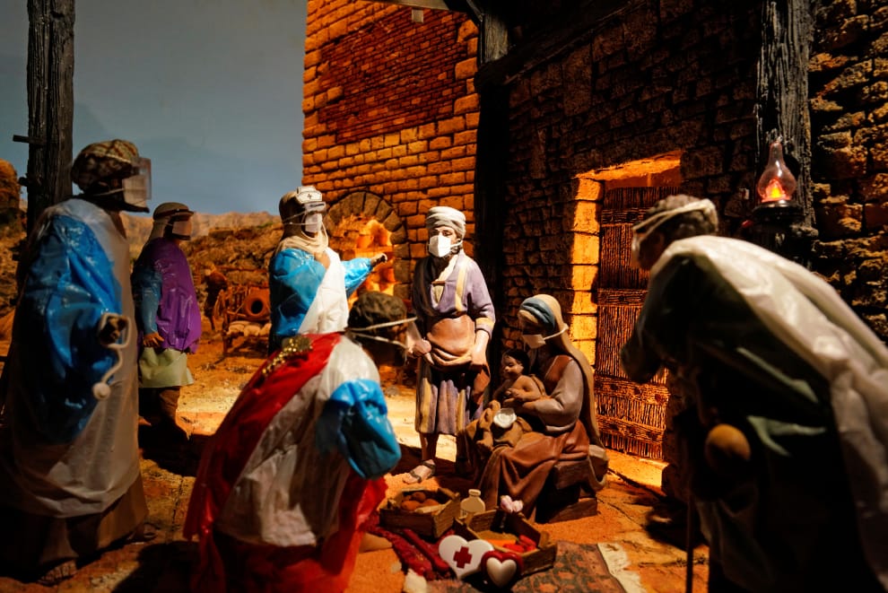在畢爾包(Bilbao)的復活節遊行博物館(Easter Procession Museum),館方為了宣導防疫的重要,特地將博物館中的小人偶通通改造了一番。