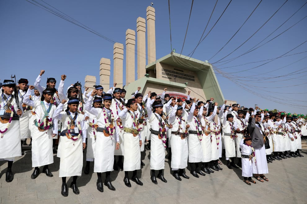 在首都沙那,反政府胡西組織(Houthis)的成員舉辦了盛大的集團婚禮,新郎們穿上正式禮服合影留念。
