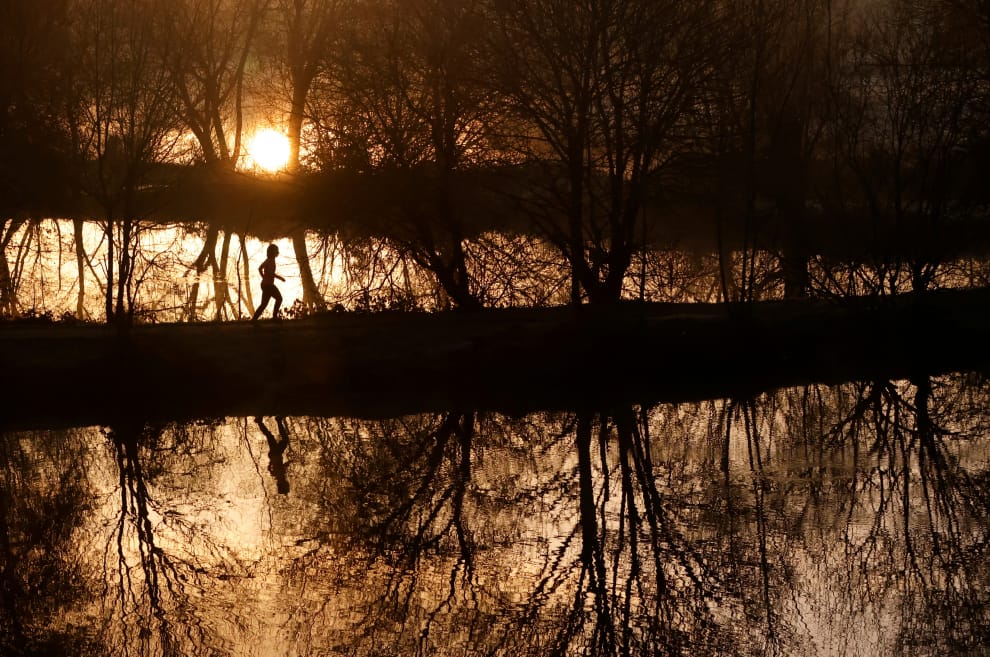在法國西北方的韋爾圖鎮(Vertou),一名女子起了個大早晨跑,一旁的太陽也緩緩從樹林間升起,構成一幅寧靜的清晨美景。