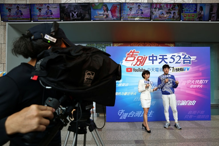 在內湖中天電視大樓,中天新聞台的主持人正在拍攝「告別中天」42小時不斷電節目,從 12號凌晨零點開始,中天新聞台將因執照到期正式停播,轉往網路電視發展。