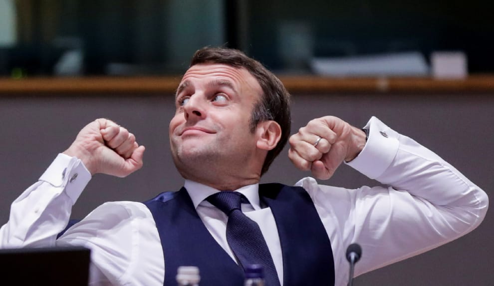 在布魯塞爾舉辦的歐盟高峰會上,連夜開會討論防疫措施、氣候變遷、歐洲安全和外交的法國總統馬克宏(Emmanuel Macron)伸了個大懶腰。