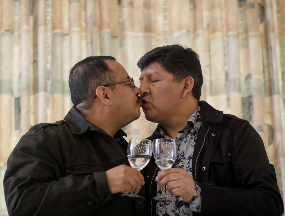 在首都拉巴斯,今年 48歲的商人阿魯基帕(David Aruquipa)和今年 45歲的律師蒙塔尼奧(Guido Montaño)開心慶祝兩人終於能在民事登記處登記為伴侶關係,雖然目前在玻利維亞同性婚姻仍不合法,但在兩人的努力下,當地LGBT的權益已有所進步。