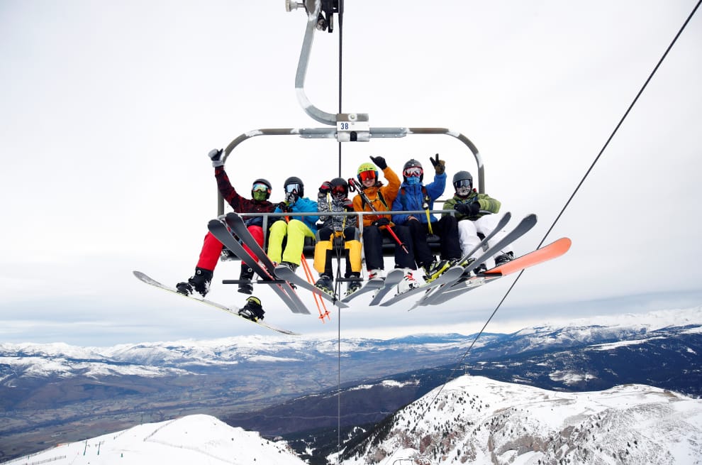 面對重新開張的馬塞拉滑雪場(La Masella ski resort),全副武裝的滑雪客搭著纜車上山,準備好好享受縱橫雪場的樂趣。