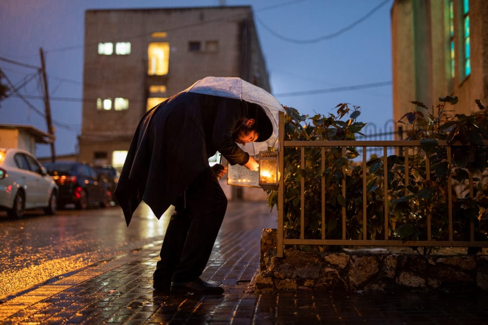 在靠近特拉維夫的貝內貝拉克(Bnei Brak),一名猶太正教信徒將放在門口的蠟燭點燃,以此來慶祝為期八天的光明節(Hanukkah),這個節日是為了紀念猶太歷史上重要的馬加比起義(Maccabean uprising),猶太教信徒們在公元前 165年成功捍衛信仰,沒有因為希臘皇帝安條克四世(Seleucid Emperor Antiochus IV Epiphanes,215-164 BC)的壓迫而「希臘化」。