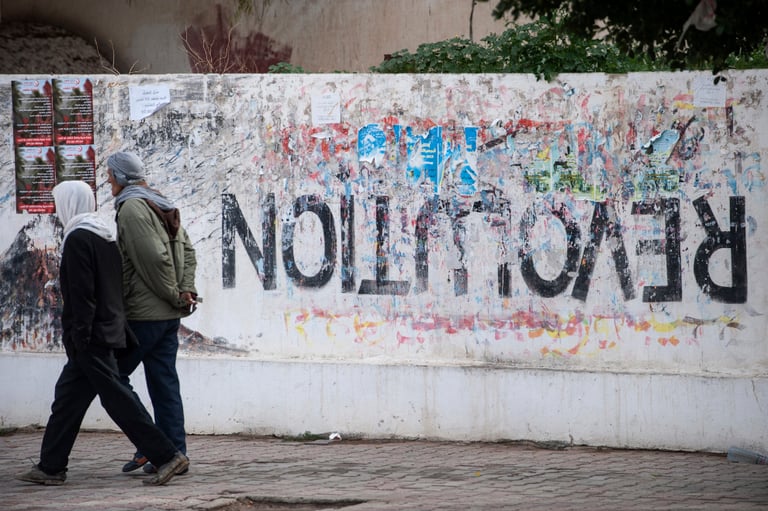 2013年,突尼西亞的新憲法協商遇到瓶頸,走溫和伊斯蘭主義路線的「復興運動黨」(Ennahda party)和許多走世俗主義的政黨談不攏,那時有兩名左派領袖被疑似是聖戰士的兇手暗殺,整個國家陷入混亂。