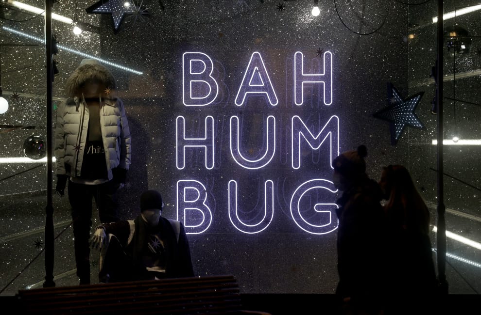 在英國第三大城里茲市(Leeds),夏菲尼高百貨公司(Harvey Nichols)選擇「Bah Humbug」一詞,作為聖誕櫥窗裝飾的主題,也是它們對 2020年的總結。