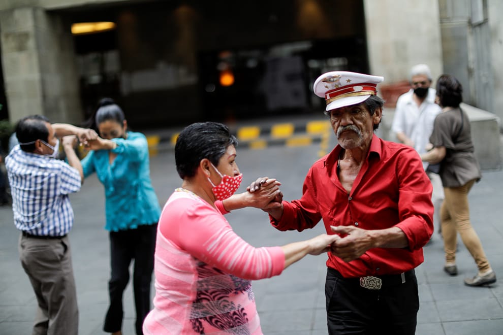 在墨西哥市的一座小廣場上,男男女女正隨著音樂起舞。最近墨西哥的疫情並不樂觀,連日傳出不少COVID-19(武漢肺炎)確診、死亡病例,讓醫療系統忙得焦頭爛額。墨西哥市及墨西哥州,也都下令所有的非必要行業通通暫停營業。